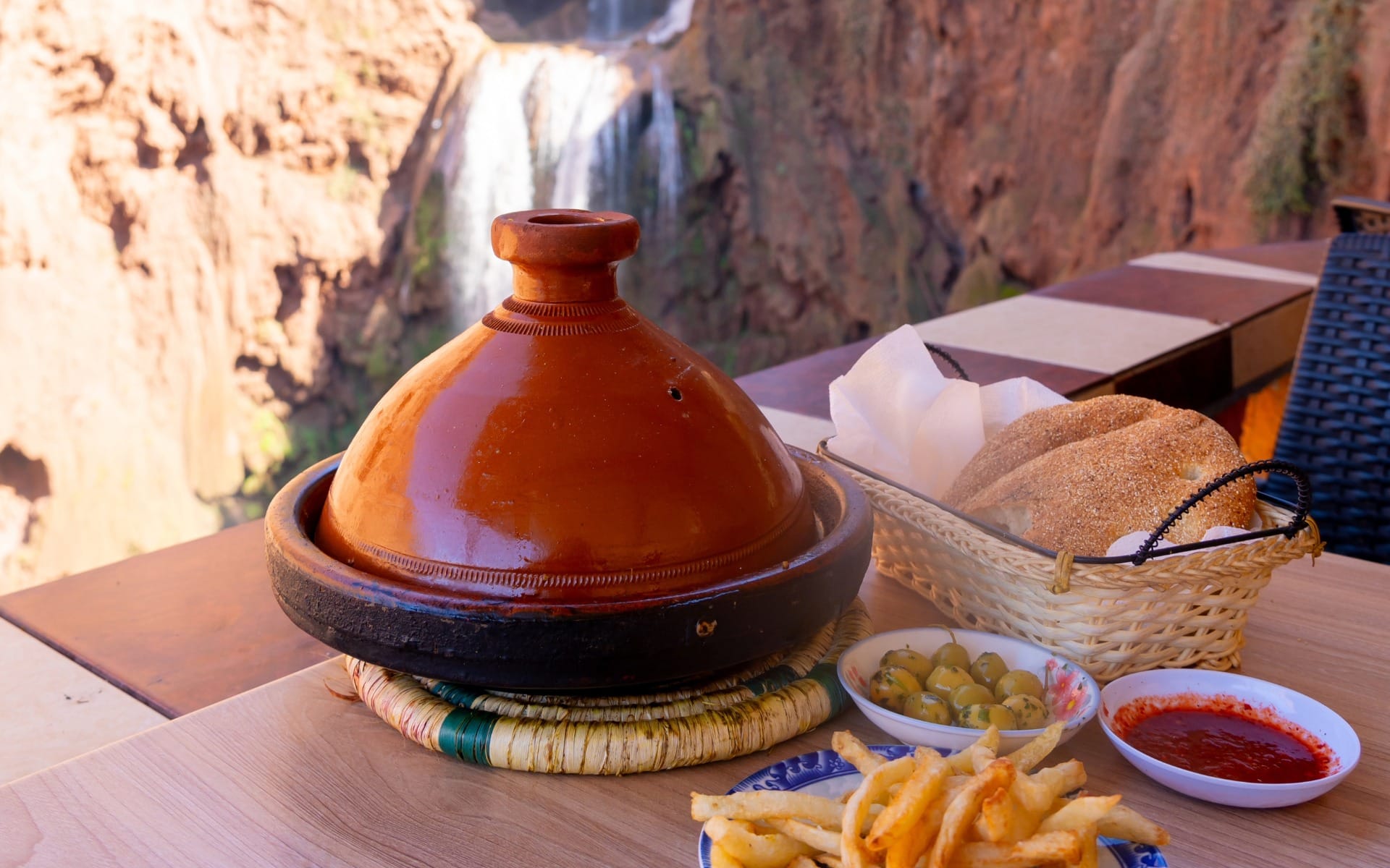 - Vous avez le temps de déjeuner seul dans l'un des restaurants avec vue directe sur les cascades. Nous vous recommandons d'essayer Tajine berbère traditionnel: simple, savoureux et parfait pour couronner l'expérience.