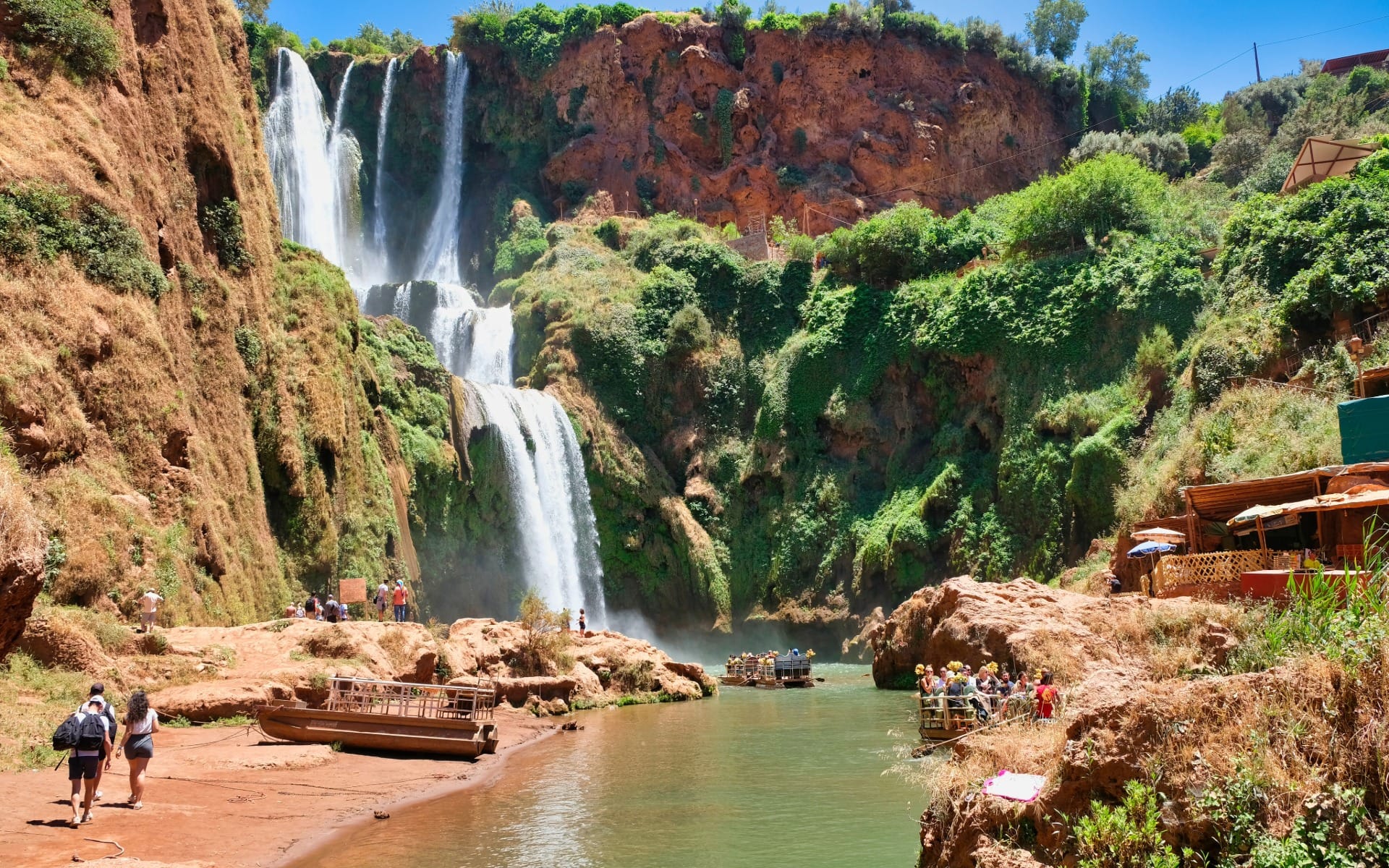 - À quelques heures de Marrakech, l'un des joyaux naturels les plus spectaculaires du Maroc vous attend : l'imposant Cascades d'Ouzoud, avec plus de 110 mètres de haut. Un endroit où l'eau, la végétation et les singes sauvages coexistent dans un paysage cinématographique. Cette visite est idéale pour ceux qui recherchent nature authentique, promenades douces, culture locale et vues inoubliables.