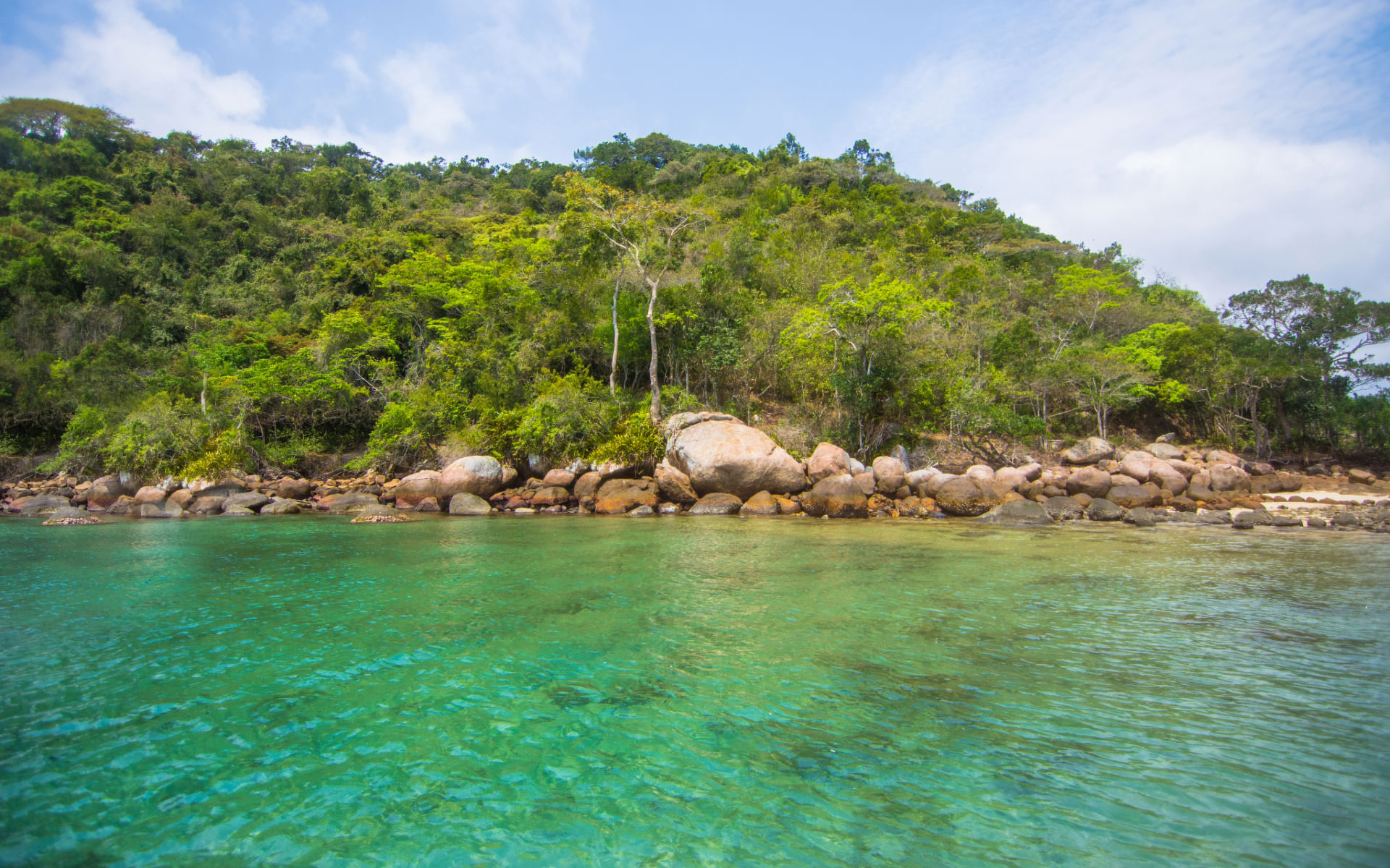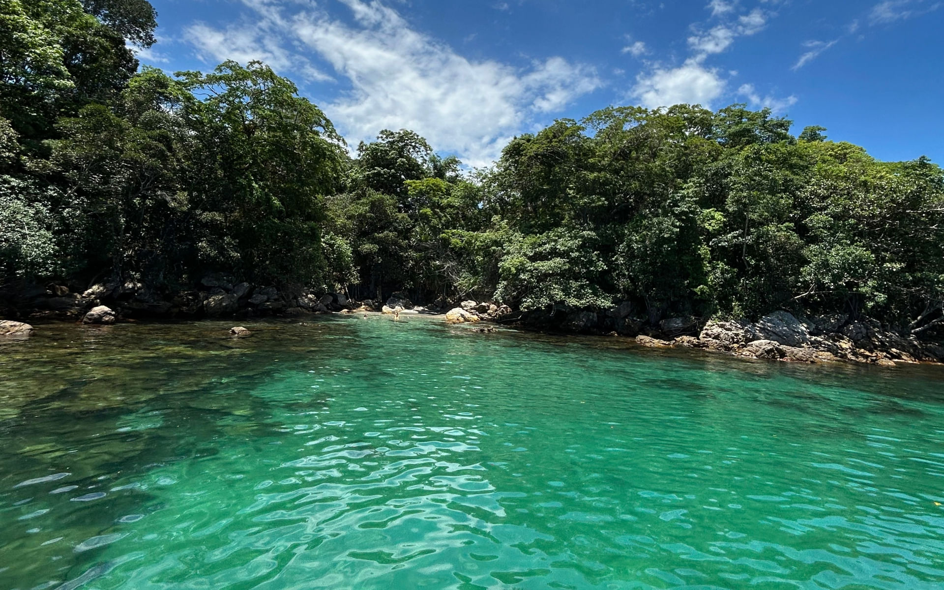 - Você embarca no barco em Angra dos Reis e em minutos está flutuando em águas verdes e azul-turquesa, cercado por peixes, árvores e tranquilidade.